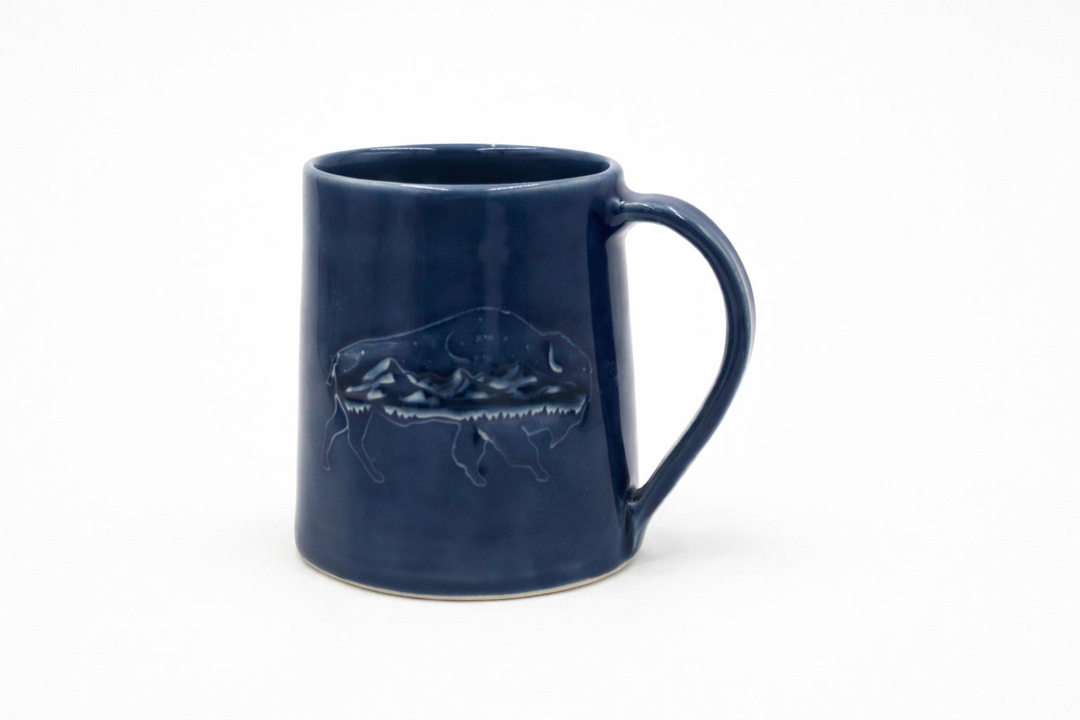 Bring the beauty of the outdoors into your daily routine with this handcrafted bison mug from Angie’s MT Pots. Inspired by Montana landscapes and God’s handiwork in nature, each mug features a bison silhouette with a mountain scene carved within the design on both sides, making it a great choice for both left- and right-handed use. The carved texture adds depth, character, and a truly handmade feel.